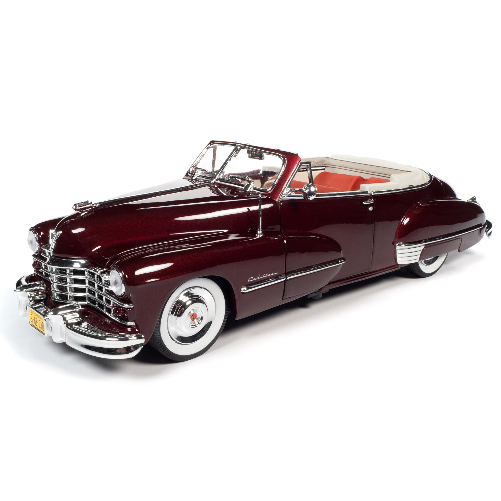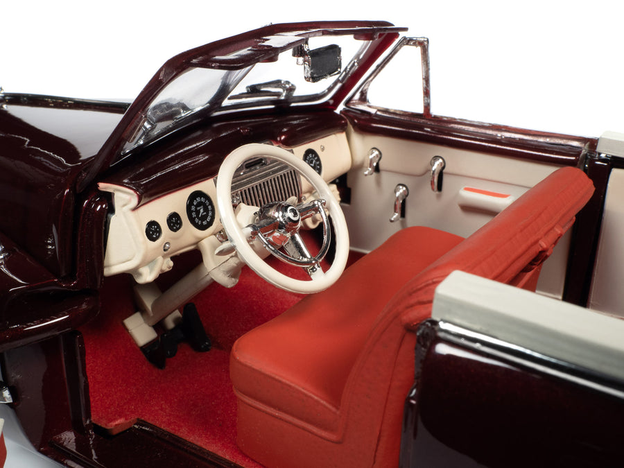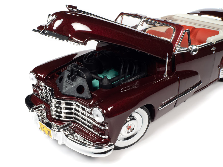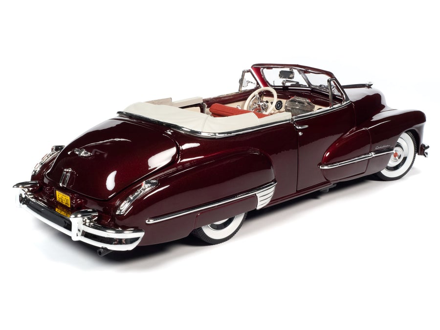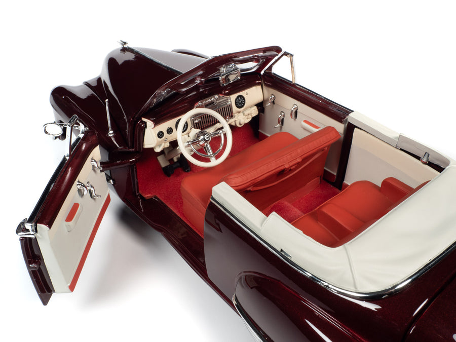 Нова модель автомобіля 1947 Cadillac Series 62 Convertible Burgundy Metallic у масштабі 1/18 від Autoworld.