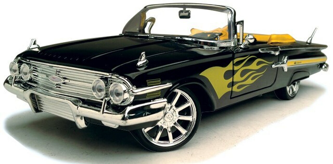 Абсолютно нова лита модель автомобіля 1960 Chevrolet Impala Black With Flames Custom в масштабі 1:18 від Motormax.