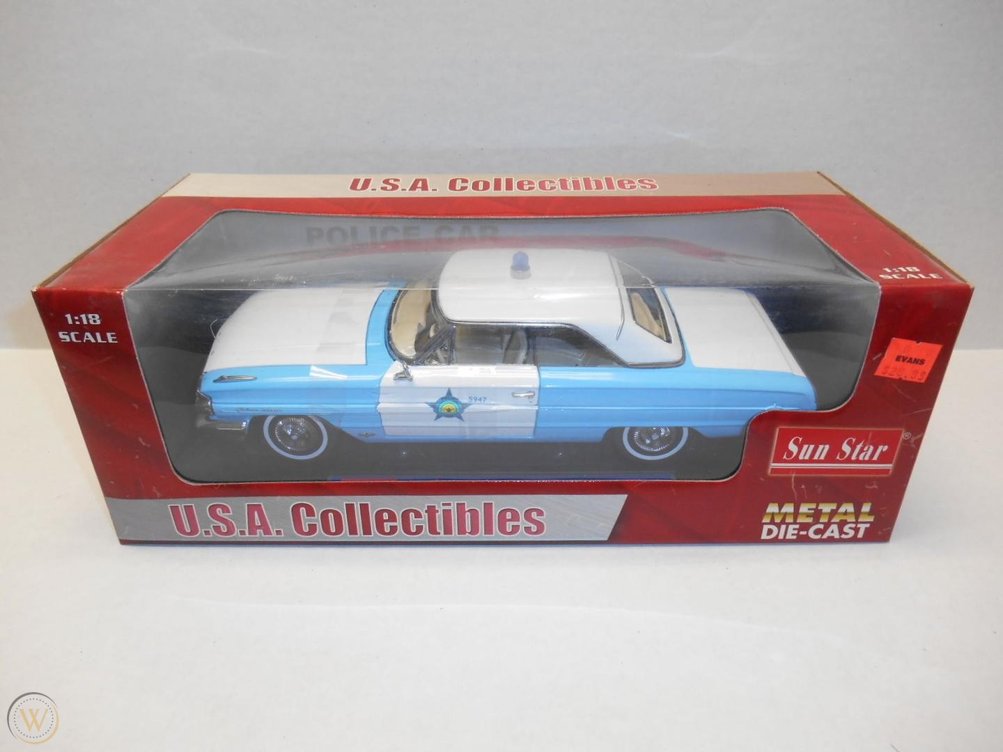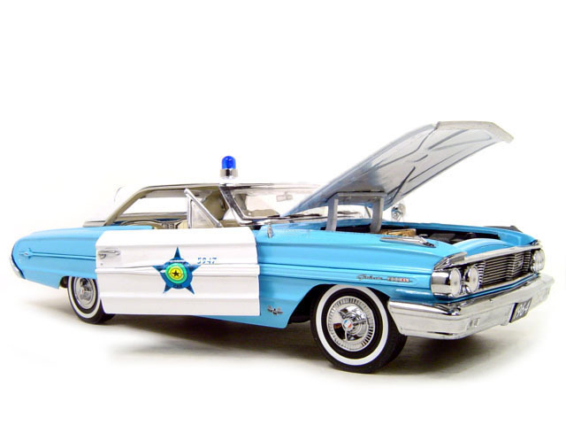 Абсолютно нова лита модель автомобіля 1964 Ford Galaxie 500 Xl Police Blue під тиском у масштабі 1:18 від Sunstar.