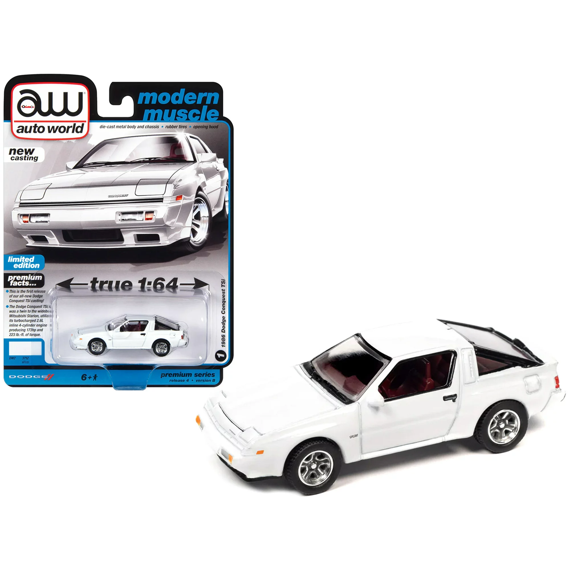 Абсолютно нова модель 1986 Dodge Conquest TSi White “Modern Muscle” 1/64 від Autoworld.