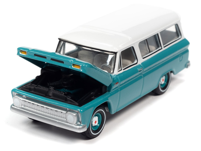 4) 1965 Chevrolet Suburban Light Green with White Top.