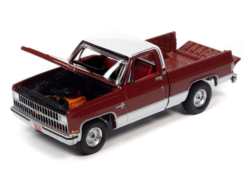 6) 1981 Chevrolet Silverado 10 Fleetside Pickup Truck Carmine Red and White with Red Interior.